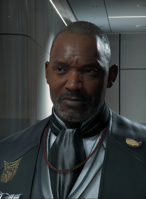 The first characters we meet are three: Deadman, Die-Hardman, and Bridget. These three figures are the public face of Bridges, an organization aimed at reconnecting a fractured America. In Sam they find an indispensable partner for their vision. But Sam is not a romantic person, he doesn’t believe in America, or in collectivity in general. He is phobic of human touch, and despite Die-Hardman’s emotionally charged rhetoric about the glory of a once-great America, he remains reluctant. So does the player. Die-Hardman’s black mask and his calculated political speeches leave no room for misinterpreting his character. The black mask, specifically, is the face of power, the faceless system, and for that reason it changes hands. Today Die-Hardman wears it; once it was President Bridget. The masks symbolize the lie, and they seem especially popular within the circles of power: - I have an obligation to protect our country. Lies are an unfortunate necessity. - But we all wear them. It is our inability to live authentically, the sickness of our civilization.