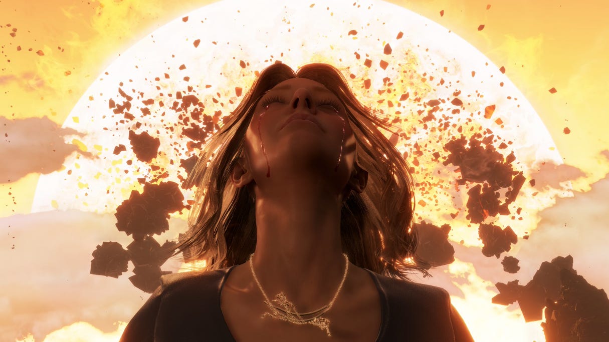 Despite being a lie, Amelie is real and is in fact an Extinction Entity (EE). A self-destructive vision-understanding of the world that, blinded by its own self-luminous nature and the scale of its ambitions, risks bringing annihilation. The Death Stranding is humanity’s extinction as a self-fulfilling prophecy, and the void-outs, its catastrophic tools, resemble, with bitter irony, nuclear explosions.